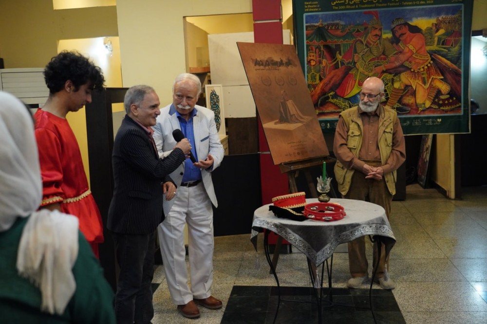 در آغاز مراسم محمد احمدی ضمن خیر مقدم به تماشاگران و تشکر از اساتید نمایش ایرانی درباره شیوه اجرایی نمایشش گفت: میخواستیم هرچه امکان دارد به اصل نمایش ایرانی نزدیک شویم به همین دلیل جایگاه تماشاگر را به سکوی اجرا نزدیک کردیم تا حس و حال تخت حوضی و حیاطهای قدیمی که در آن نمایش اجرا میشد را برای تماشاگر ایجاد کنیم.