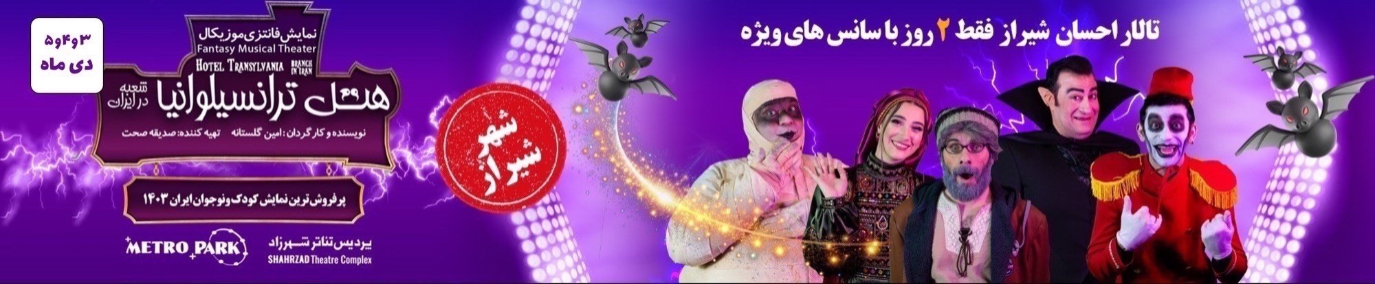 - در صورت خرید بلیت نمایش «هتل ترانسیلوانیا | شیراز» از ۳۰٪ تخفیف ویژه برای خرید بلیت نمایش «کارخانه هیولاها (سالیوان در ایران) | شیراز» بهرهمند خواهید شد.