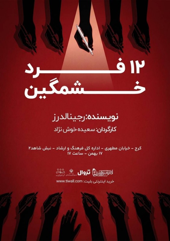 ۱۲ فرد خشمگین، خشونت نهفته در جامعه و انسان طاغی را نمایش می دهد. این نمایش با کنایهای ظریف به پدیدهی پدرکشی، زیر پایِ آنچه بدیهی و واضح پنداشته می شود را خالی می کند و مخاطب را به بازاندیشی در اصولی که سالها با آن زیسته، دعوت میکند.
