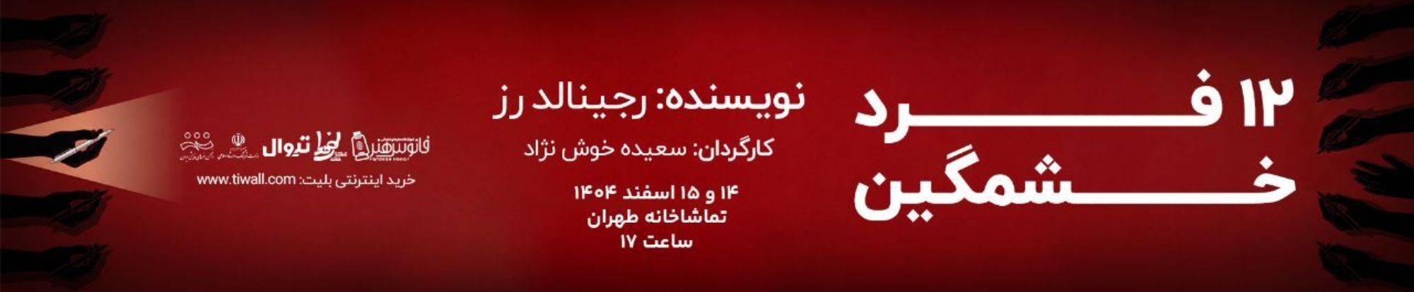 12 فرد خشمگین، خشونت نهفته در جامعه و انسان طاغی را نمایش می دهد. این نمایش با کنایه ای ظریف به پدیده ی پدرکشی، زیر پایِ آنچه بدیهی و واضح پنداشته می شود را خالی می کند و مخاطب را به بازاندیشی در اصولی که سالها با آن زیسته، دعوت می کند.
