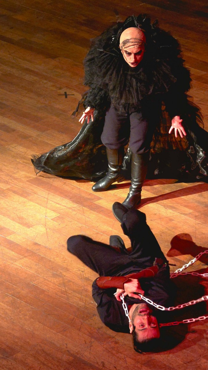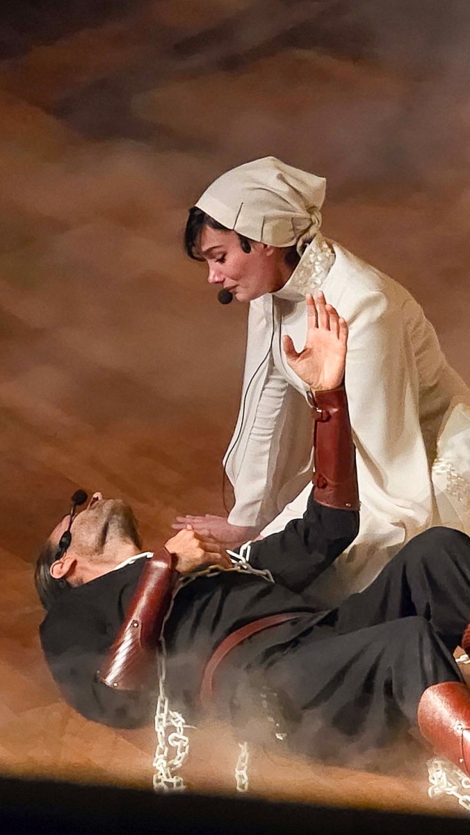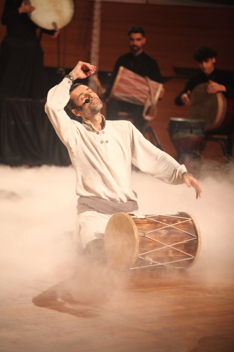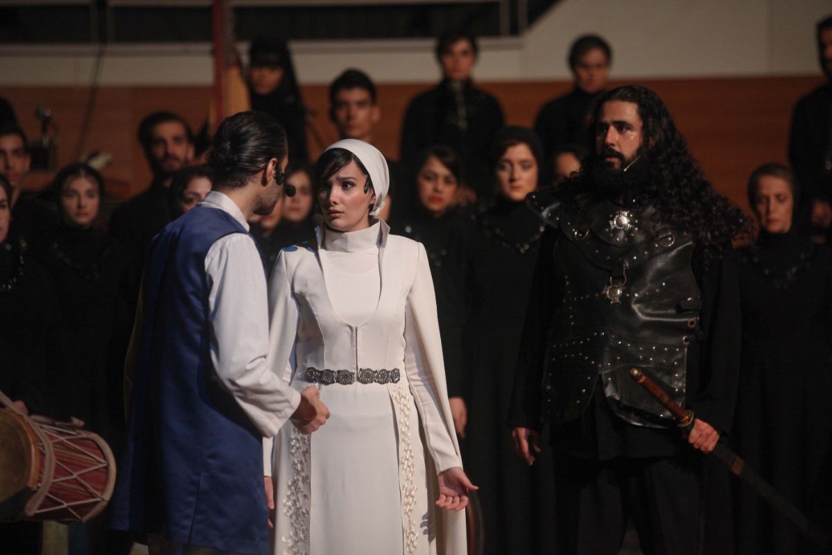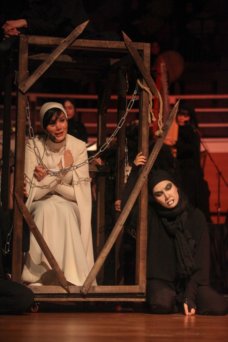 دیالوگهای این نمایش در قالب شعر کلاسیک ایرانی و همراه با موسیقی، حرکت و دف نوازان متعدد است.